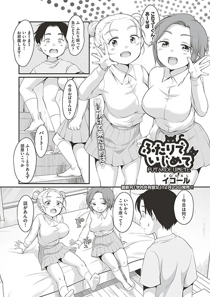 『ふたりでいじめて(単話)』を読む ▶こたろーの家に二人で訪れて来たほたるちゃんとあかねちゃん。優柔不断なこたろーにどっちを彼女にするのかはもう諦めて?両方ともえっちなコトはしていたが最後の一線のセックスまではしていなかったので、彼女たちが話し合って3人で一緒にセックスするのが平和だなってこたろーを2人で押し倒す!!こたろーのお●んちんを自ら挿入し腰をふりそのまま中へ出す!をそれぞれ2回づつ繰り返す!!