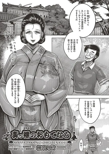 『真っ裸のおもてなし(単話)』を読む ▶今は温泉旅館の経営も厳しくなって特別サービスを提供するところも少なくない。他の旅館とは変わった宿泊プラン、一般客は参加できないプレミアム会員限定の「二泊三日の全裸特別おもてなし」コースを選択すると、爆乳女将の絵倫子が部屋に入ってきて衣服を脱ぎ去り真っ裸。脱ぎたてのパンティも記念にもらえ、NGなしで豊満ボディを好き放題!!
