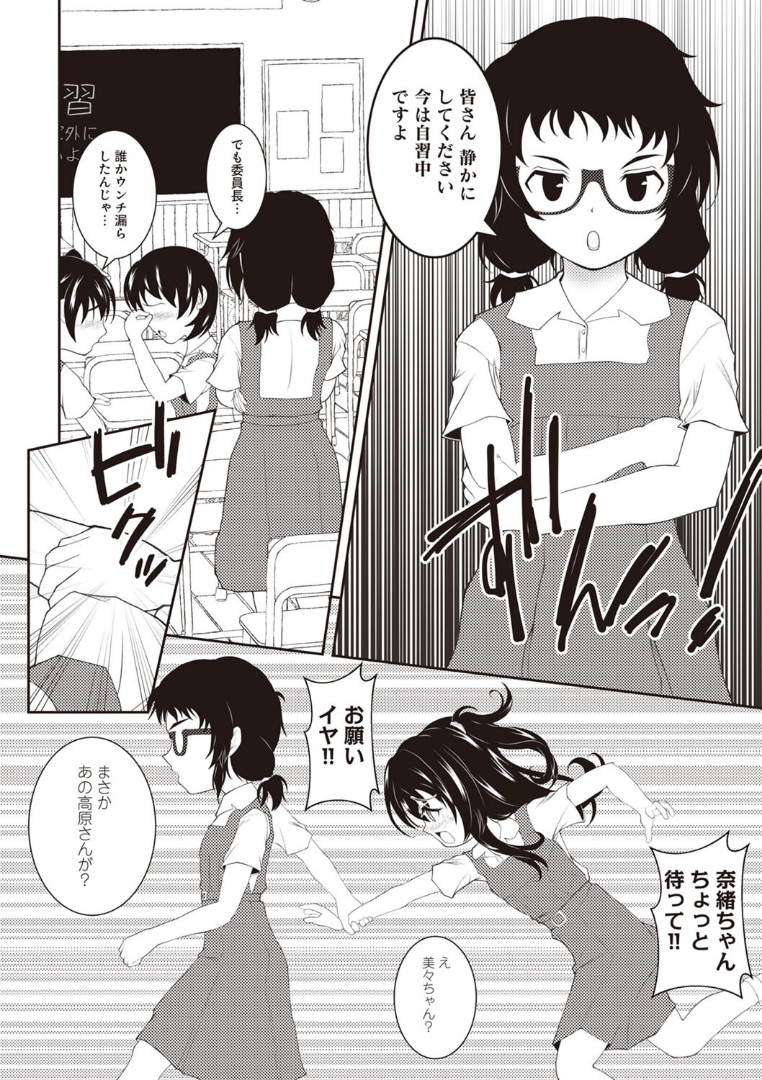 『公開おむつプレイ教室〜美々の受難〜(単話)』を読む ▶自分よりも成績優秀、眉目秀麗な美々を、奈緒は許せなかった。クラス委員長の立場だって、くだらない理由で手に入れたもの。どうにかして美々を辱めてやりたい彼女が思いついたのは――担任のいない教室で、奈緒は自らの地位を恃んで、美々のスカートを捲る。そこにあったのは、茶色く染まり、膨らんだおむつだった。ダークなおむつ&スカ!