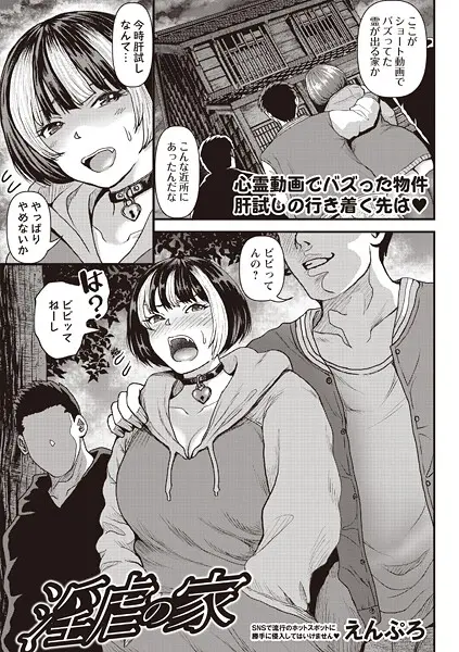 『淫虐の家(単話)』を読む ▶心霊動画でバズっていた物件へ肝試しにきたヒロイン一行。突如現れた人物にビビッて逃げ出す彼氏たちと腰が抜けてしまったヒロインを住人が襲う!「勝手に侵入しやがって!俺のチ●ポが侵入しても文句ねえな!!」