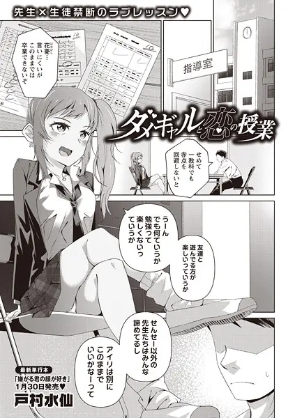 『ダメギャルと恋の授業(単話)』を読む ▶何もかも諦めていた落第目前の不良ギャル。真面目に向き合ったら……童貞喪失!?「赤点回避したら……ごほーびちょうだい?」最初はリードされて頑張ったご褒美に中出し射精★真っすぐな言葉でドキドキ★教師とJK純愛ストーリー!