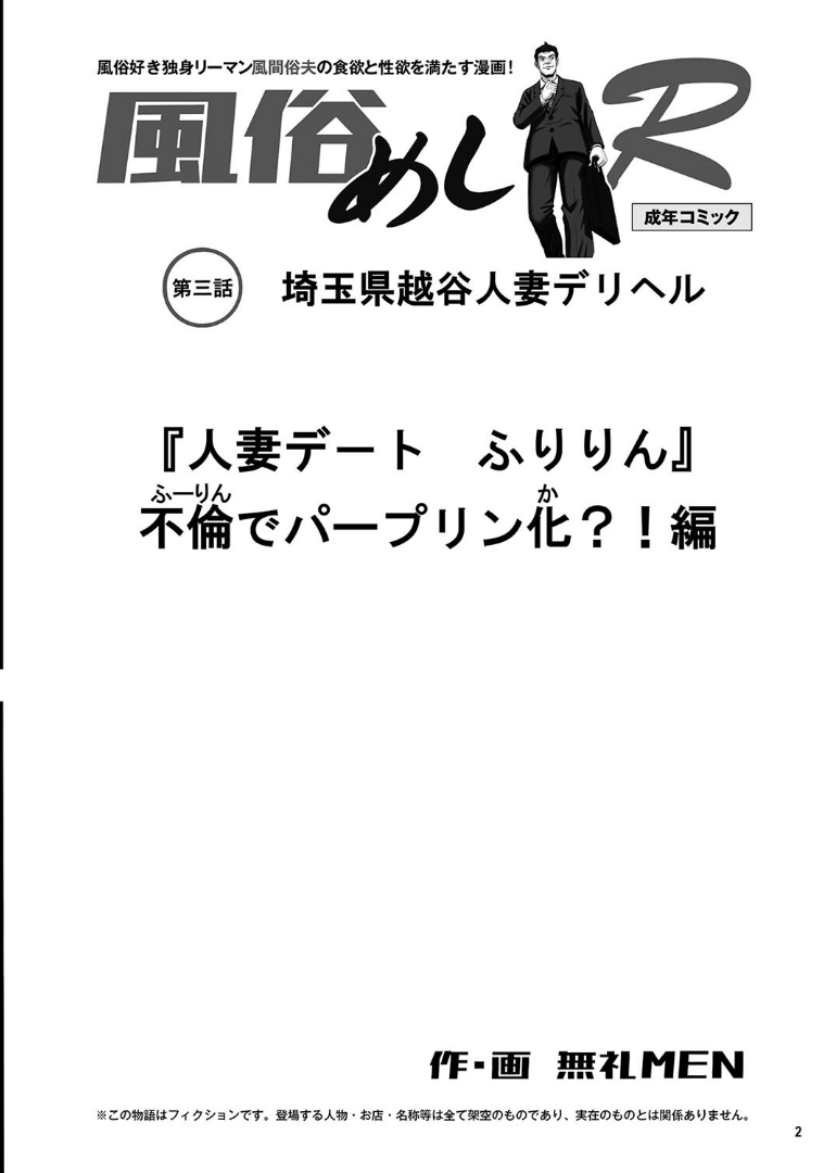 『風俗めしR単話(単話)』を読む ▶風俗好き独身リーマン風間俗夫が食欲と性欲を満たす! 限りなくリアルに近い、孤高の風俗店探訪&ちょい飯漫画、第三話。訪れた地方都市で息ヌキをすべく、電話をしたのは待ち合わせ型の人妻系デリヘル。昼下がりの情事よろしく、リアルな不倫気分で人妻さんとホテルへ向かい、「挿入ってるんじゃないか?」と錯覚するほどに密着度が高い素股に感動を覚える俗夫。大満足でホテルを後にしたのだが、そこで見覚えのある謎の男の存在…
