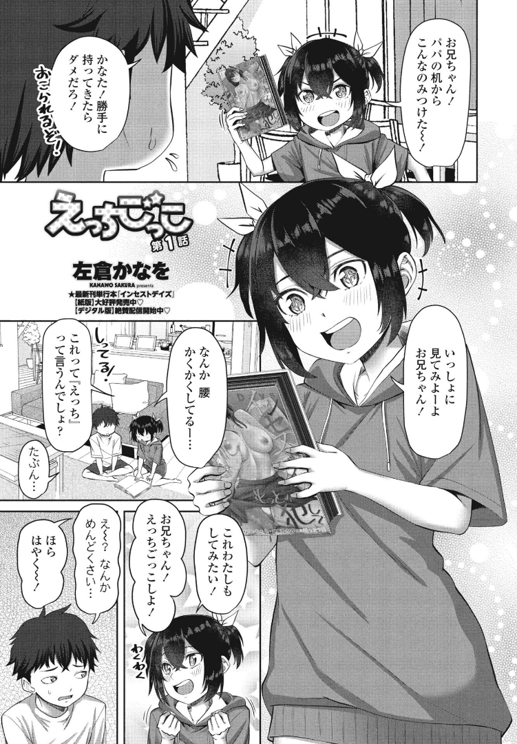 『えっちごっこ(単話)』を読む ▶●い兄妹は好奇心で本の真似をしてえっちごっこにハマってしまった。成長と共に行為はエスカレートして家でも学校でもハメまくり。兄妹でセックスなんてダメだって本当はわかってるけど…これはごっこ遊びだもん♪……左倉かなを「えっちごっこ 第1話」