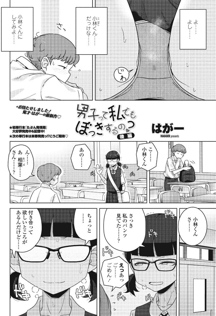 『男子って私でもぼっきするの?(単話)』を読む ▶地味な自分が男子を興奮させられる事実に気分をよくしたオタク女子。次々にクラスメイトを誘惑して見抜きをさせていくものの…主導権を握ったつもりで調子に乗っているうちにクラス1可愛い女子による寝取りを見せつけられてしまい!?……はがー「男子って私でもぼっきするの? 後編」