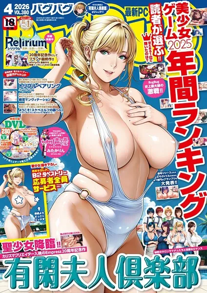 『BugBug2026年4月号』を読む ▶■巻頭大特集『有閑夫人倶楽部』(Empress)・聖少女降臨!! カリスマクリエイター入魂のEmpress20周年記念作を巻頭10ページで総力特集!!・独占先行公開CGやシナリオプレビューやロングンタビュー等ここでしか見られない独占情報も満載・聖少女描き下ろし西園寺クレアの表紙&エッチな差分イラストB2タペストリー応募者全員サービス付き!!■特別企画 「読者が選ぶ!! 2025美少女ゲーム年間ラン…