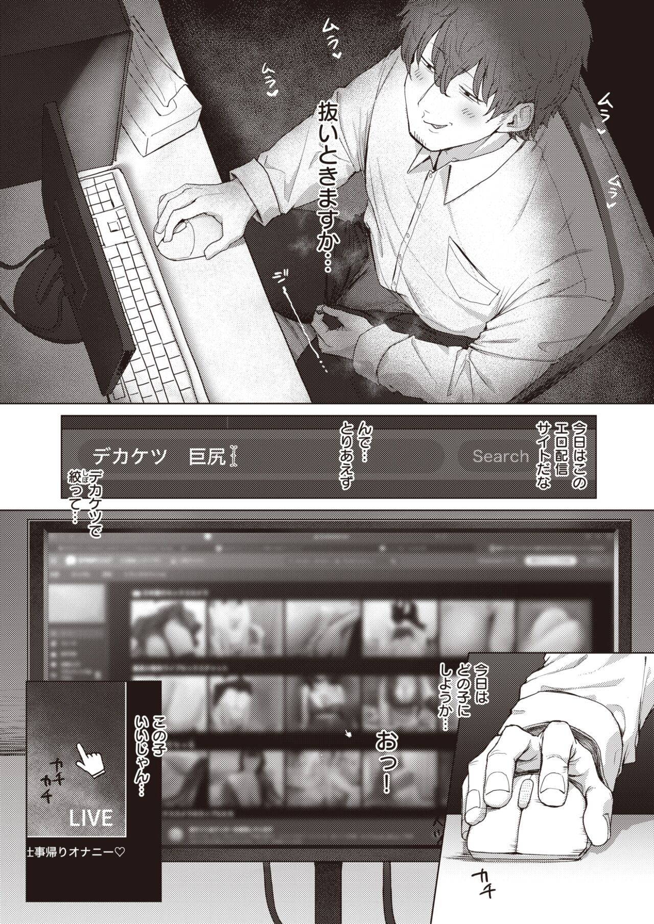 うんうん!主人公の佐藤くんはエロ配信サイトで一発抜こうとしたら、なんとそこに映ってたのは女上司の美しい巨尻だったの!
