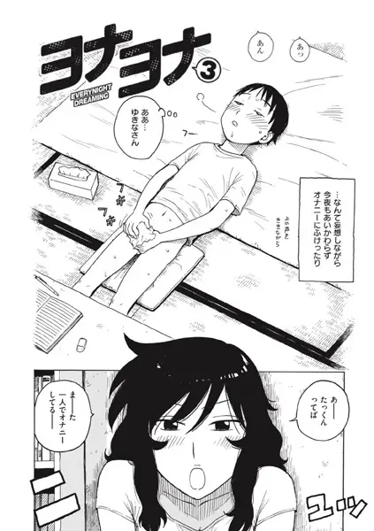 『よなよな(単話)』を読む ▶ボロアパートに住むたっくん。お風呂の件からアパートの人妻たちが色々よくしれくれるようになった。憧れのゆきなさんとも仲良くなりたいと思っていると、ゆきなさんから一晩泊めてくれないかと部屋に訪ねに来て…(単行本『よなよな』収録作品)