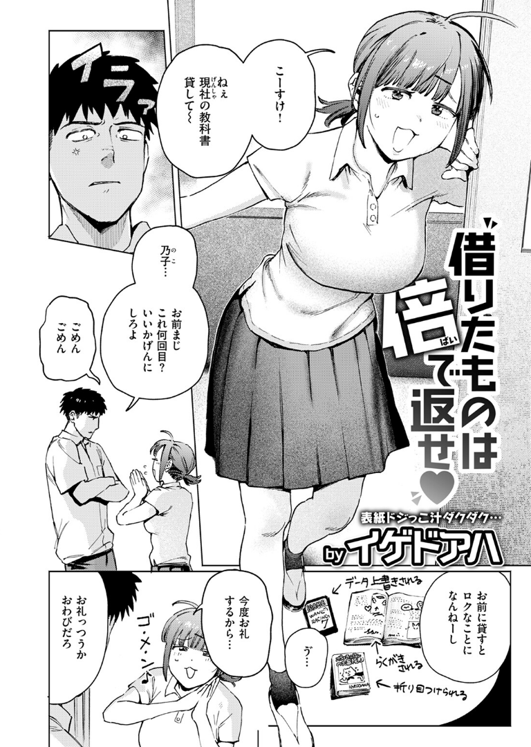 ドジっ子汁だくだく♪表紙はイゲドアハの描くびしょびしょノーパンガール!ナメられ、イカされ、ちょろヌレヒロイン大集合です♪「その…パンツ…忘れちゃって…」ドジっ子幼馴染はノーパン!? 表紙&巻頭はイゲドアハ『借りたものは倍で返せ』乃子(のこ)と幸介(こうすけ)は幼馴染。ドジでいつも忘れ物ばかりの乃子に苦労させられている幸介は、乃子に呆れ気味。次忘れ物したらガチめにキレてやると意気込む幸介だったが、彼…