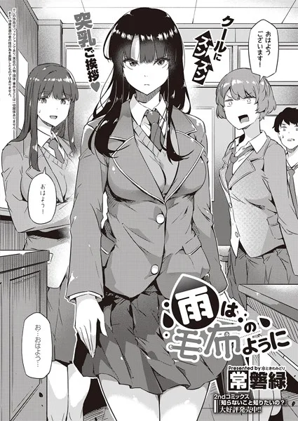 『雨は毛布のように(単話)』を読む ▶堅物委員長の杏種がエロ本を所持しているのを、たまたま発見してしまった糸埼!!後日、糸埼を呼び出した杏種は秘密を守ってもらうために『私を犯せ!!』と懇願してきて!?一度は断ったものの、彼の優しさに心を打たれた杏種は、その豊満ボディでエロ本のセックスを再現♪興奮してヌレヌレな杏種のアソコに、糸埼は容赦のないピストンで責め立てて…!画ヂカラ最高峰絵師・常磐緑先生淫筆! クール系委員長としっとり・ねっとり…