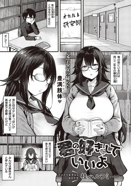 『君の好きにしていいよ(単話)』を読む ▶オカルト研究部に所属する俺は、部員の地味だけど爆乳で隠れ美人な藤咲さんに催●術をかける!!こんな茶番効く訳ないよな…と思っていたが、まさかの効果てきめん☆特盛のデカパイを堪能し、さらにはバキュームフェラまで言う事を聞いてくれて!?それから所構わず藤咲を呼び出す俺だったが、彼女から衝撃のお願いを聞かされ――!ドスケベ女子ならおまかせ♪ 桂ハルフミ先生が描く、豊満ボディな文学少女にリビドーぶちまける本…