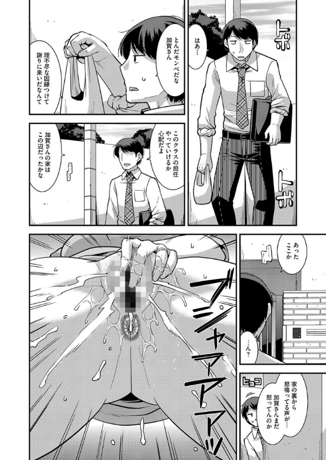 『調教されるにらみ妻(単話)』を読む ▶とんでもないモンペの母親に因縁をつけられてしまっている教師。これも仕事だとしぶしぶ自宅へ謝罪にいったところ、件の母親が外の向かって盛大にオナニーをしている場面を目撃してしまった